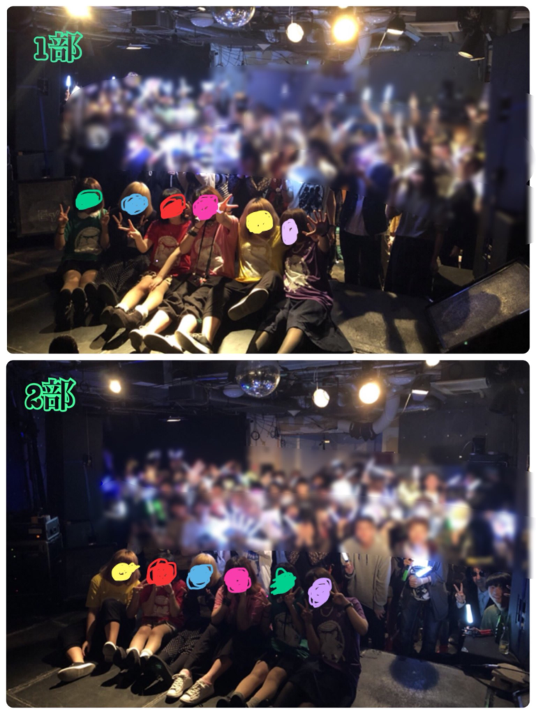 ライブ時の集合写真ではピンク色のTシャツを着ている人物が愛繋璃さん